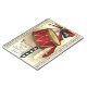 Illustration vintage patriotique de la fête de l'Indépendance, image de la fête du 4 juillet représentant un tambour entouré de notes de musique dorées. On peut presque entendre la musique patriotique jouée par la fanfare pendant le défilé ! "Trois acclamations pour le Rouge, Blanc et Bleu !". Des rubans avec des étoiles et des rayures maintiennent les baguettes de tambour. Par l'artiste rétro Ellen Clapsaddle.