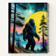 Sasquatch coloré marchant sur la montagne sous une pleine lune IA Art généré par minx267