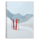 Paysage hivernal Abstrait avec vue panoramique sur la montagne, équipement de ski rouge, sentier et ciel bleu