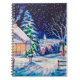 Carnet Paysage hivernal enneigé. Maison de campagne. Noël