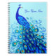 Carnet dans un paon d'imaginaire avec une queue somptueuse, dans les nuances turquoise profonde et bleu cobalt, sur un arrière - plan aqua doux avec texte personnalisable