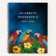 Un collège a décidé le carnet pour vos idées d'artisanat pour les filles et les femmes ados. Un ciel bleu foncé comme arrière - plan. Trois perroquets en bleu, rouge et jaune assis sur des feuilles de palmiers verts. Floraux jaunes, fleurs Hibiscus. Ajoutez votre nom et le titre du livre. Texte blanc.