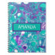 Turquoise, violet et turquoise versez cellules de peinture marbre comme tourbillons art abstrait nom personnalisé carnet.