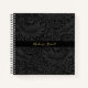 Elegant vintage black floral botanical pattern notebook with a custom name in stylish script typography.