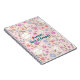 Personalized floral notebook, with spiral bound pages. Add a title in teal blue script over a full page of ditsy, multi-color, hand-drawn flowers on a blush background. No AI or purchased elements. The design pops off the cover. Perfect to customize for any woman, with any title, for any occasion. Pastel flowers are pink, coral orange, blue, off-white and green stems.