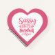 Capture thoughts and notes with a touch of personalized charm! This adorable heart-shaped spiral notebook features two unique designs in one. The left side is ready for personalization with "To [Your Name]," making it a thoughtful gift or a special treat for yourself. The right side boasts the fun and empowering "Sassy Like My Mama" slogan, perfect for moms, daughters, or anyone who embodies that spirited attitude.