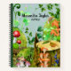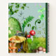 Un grand carnet en spirale avec nom et texte personnalisable avec des illustrations aquarelles des champignons de la forêt, de la mousse et d'autres plantes, le carnet fonctionnerait bien pour les notes scientifiques pour l'école, et comme un cadeau personnalisé pour quelqu'un qui aime la nature.