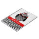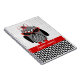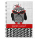 Un carnet de notes à spirale comportant une illustration d'un hibou gris et noir avec un ventre de pied-de-poule et des pieds rouges. Le hibou utilise un casquette rouge et noir de fascinator et des lunettes de soleil rouges de plot réflectorisé. Personnalisez avec votre nom.
