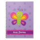 Carnet personnalisé comportant un papillon coloré avec un bel arrière - plan floral pourpre. Conception mignonne et d'amusement pour le special pour des filles. Cadeau décoré d'un monogramme fait sur commande.