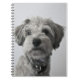 Le jeune chef de chien de Schnauzer a tiré avec l'arrière - plan gris.