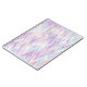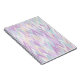 Un chevron abstrait dans une palette violette, turquoise, ivoire et blanche.