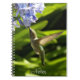 Un carnet de taille personnelle, lié à la spirale pour les notes et plus qui présente l'image photo d'un minuscule colibri en vol, nourrissant le nectar d'une fleur bleue d'Agapanthus. Utilisez comme journal ou pour garder des notes importantes.