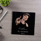 Un fond noir classique. Personnalisez et ajoutez une photo, un nom, un âge. Texte blanc.