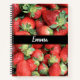Carnet spiral avec une photo colorée représentant une bande de lustres fraises rouges.