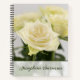 Un design de couverture de cahier intemporel avec une photographie en gros plan de fleurs de rose blanches dont une fleur est mise en valeur. Élégant et serein, ce design floral est parfait pour le journalisme, la prise de notes ou comme cadeau. Personnalisez avec votre nom pour un effet personnel.