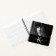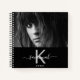 Un arrière - plan noir chic. Personnalisez et ajoutez votre propre photo, un nom, une lettre monogramme et une année. Le nom est écrit en blanc avec un grand script de style à la main moderne avec des swashes. La lettre monogramme en gris. Pour l'école, travaillez comme journal et journalisation. Pour que les swashes ne suppriment que le nom de l'échantillon, laissez les espaces ou les émoticônes devant et après le nom