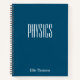A cute, trendy notebook to take to physics class or for homework with a simple, minimalist cover in pretty dark teal blue and space for the school subject and your name to be personalized.