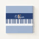 Un carnet élégant en spirale avec un design musical de touches de piano, en bleu et blanc. Personnalisez le carnet avec l'initiale du destinataire, en orange clair, avec leur nom dans la typographie de script blanc. Le carnet monogrammed est une idée cadeau élégante pour les amateurs de musique.