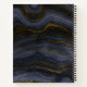 Carnet spiral avec une belle image de pierre abstraite foncée. Les couleurs tourbillonnent par vagues. Les couleurs principales sont le noir, le bleu-gris avec un ruban d'or faux qui traverse la conception. Moderne et tendance.