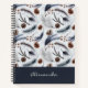 Un carnet en spirale personnalisé avec un beau motif. Cônes de pin, plumes, aiguilles de pin et gerbes de baies. Design rustique aquarelle.