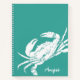 carnet bleu cool imprimé avec un look de crabe en mauvais état. À l'avant, il y a un grand crabe unique, et un espace vous permettant d'ajouter votre nom. Appuyez simplement sur PERSONNALISER et changez le texte pour qu'il convienne. À l'arrière du carnet se trouve un motif de crabes à l'allure patinée. Carnet à imprimé de fruits de mer bleu et blanc. Carnets nautiques.