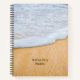 Carnet de spirale avec photo d'une plage de sable brun doré au surf mousse blanc.