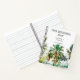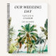 Ce carnet élégant et magnifique ferait un grand wedding planner, album photo, livre d'invité et plus encore. Le design comprend une plage aquarelle, un ciel bleu et des palmiers. Le texte combine écriture manuscrite et polices sans serif pour un look élégant et moderne. Il est parfait pour une plage d'été ou un mariage de destination tropicale.