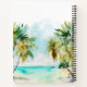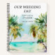 Ce carnet élégant et magnifique ferait un grand wedding planner, album photo, livre d'invité et plus encore. Le design comprend une plage aquarelle, un ciel bleu et des palmiers. Le texte combine écriture manuscrite et polices sans serif pour un look élégant et moderne. Il est parfait pour une plage d'été ou un mariage de destination tropicale.