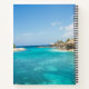 Un carnet personnalisé avec une belle photo représentant un complexe balnéaire tropical. Jolie plage de sable blanc et d'eau bleue avec des paillotes, ce qui lui donne une ambiance insulaire tranquille. Un cercle blanc superposé avec votre nom et votre monogramme initial à l'intérieur.