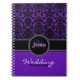 Ce carnet de notes de wedding planner monogrammed violet, noir et blanc damassé contient des cases modèles pour ajouter votre nom, votre monogramme ou autre texte, et ferait un endroit chic et élégant pour suivre tous vos plans de mariage ou d'autres informations. Si vous avez besoin d'aide pour customiser cet article, veuillez envoyer un courriel à niteowlstudio@gmail.com pour obtenir de l'aide.