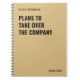 Carnet amusant pour les collègues de bureau, les gestionnaires, les amis de travail ou d'autres professionnels de l'administration et des affaires. Personnalisez le nom à imprimer au bas de la couverture "Plans pour reprendre la compagnie". Les carnets personnalisés sont parfaits pour les anniversaires de travail, les vacances, les échanges de cadeaux de bureau et plus encore!