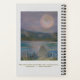 Ciel de lavande, lune rose, verdure, dresse un cadre paisible de rives bordées d'arbres, d'eau et de quai. Citation sur le dos "Que ce que je fais coule de moi comme une rivière, pas de force et pas de retenue..." — Rainer Maria Rilke