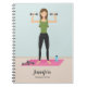 Ce carnet présente l'illustration de Destei d'une jeune brune mignonne qui lève du poids. La fille a de longs cheveux bruns, sa chemise est verte et ses jambes sont noires. La fille se tient sur un tapis d'entraînement rose qui porte des haltères et une bouteille d'eau. Sous l'image il y a des zones de texte personnalisables pour le titre du carnet.