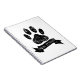 Empreinte de patte de chien en détresse avec ruban noir. Le meilleur ami de l'homme. Image en noir et blanc.