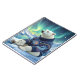 A polar bear, wearing a colorful sweater, sits on an ice floe as the aurora borealis illuminates the sky, creating a magical backdrop