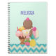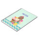 Un carnet en spirale personnalisé illustré par le dessin d'une crème glacée à 3 bouchons ensoleillée avec des arrosages colorés. Un cône glacé avec des boules de chocolat, fraise et vanille. Un bol de glace néopolite avec une cerise sur le dessus. Des fraises et un ananas sont assis à côté des bols. L'été et doux. Un motif de chevron crème et bleu sur le bord inférieur.