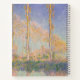 impressionist landscape painting depicting three poplar trees on the Banks of the Epte River near Giverny, Eure, Normandy, France, in fall, ln the light of a late afternoon sunset. Thee deep blue sky contrasts with the warm pink orange and yellow leaves, the foliage is reflected in the waters of the river