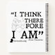 Un carnet avec le visage de René Descartes sur le devant et son célèbre Cogito "Je pense donc je suis" sur le dos.