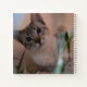 Belle chatte aux yeux bleus regardant la caméra en alerte.