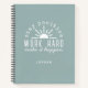 Inspire Your School Year with this Personalized Motivational Notebook featuring the empowering mantra: "Stay Positive – Work Hard – Make It Happen." A sunrise graphic adds visual appeal along with the appealing seafoam green (a silver green) background color. Designed to uplift and motivate students, teachers, and goal-getters alike, this notebook is the perfect blend of style and encouragement. Whether you're jotting down class notes, daily goals, or creative ideas, this motivational notebook keeps you focused and energized every step of the way. The clean and modern layout includes a personalized name field on the front cover, making it uniquely yours or the perfect customized gift for a student, teacher, or dream chaser. Perfect for middle school, high school, college, or even professional use, this notebook stands out in your backpack or on your desk with its powerful message and personalized touch.