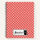 Adorable pois rouge motif avec chat noir étiquette personnalisé.