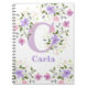 Premier Initial Plus Nom Carla avec Fleurs Design caractéristiques Monogramme & Nom avec Fleurs de chaque côté dans un style pastel couleur eau. L'initiale est la lettre C.