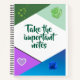 Une description appropriée pourrait être : "Un carnet en spirale élégant avec un design "Prenez les notes importantes" avec des accents verts et bleus, un motif cardiaque, et des illustrations roses, idéal pour un usage personnel ou comme cadeau." Cela développe les éléments visuels du carnet.