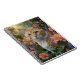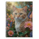 A pretty white and orange cat enjoying a beautiful Summer day surrounded by a charming pastel cottage floral garden.
