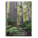 Un carnet de taille personnelle, lié à la spirale, qui présente l'image d'un paysage forestier vert avec des conifères à feuillage persistant ainsi que les paroles inspirantes de la prière de sérénité imprimée en écriture blanche et stylisée. Utilisez comme journal ou pour garder des notes importantes.