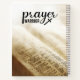 Carnet, journal avec croix chrétienne et citation inspirante représente une photographie d'une Bible ouverte. Il comporte la légende, "PRIER LE GUERRIER".