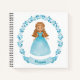Cheveux foncés mignons, princesse en robe brillante bleue décore ce carnet Back of carnet a un motif floral bleu sombre. Personnalisez-le avec votre nom. Fait une fête d'anniversaire mignonne ou un cadeau. Conçu pour vous par Blackberry Boulevard.