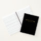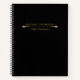 Our Notebook has a sleek black background, designed to make every note you take feel like a statement. On the front lies striking gold name, personalized just for you, with an elegant bar, below it sits your profession or job title in crisp gold lettering, adding a timeless touch.
