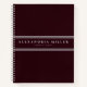 Le carnet moderne présente un design simple dans une palette de couleurs bordeaux et gris. Nom personnalisé présenté dans une bannière bordeaux avec une double bande grise aux accents gris clair et texte. Montré avec un nom personnalisé sur le devant de la typographie moderne, ce carnet d'affaires personnalisé est conçu avec du texte personnalisé. Vous pouvez customiser en modifiant le texte à l'aide des champs fournis, ou en utilisant le bouton "contacter ce concepteur" pour obtenir de l'aide. Pour créer votre propre carnet personnalisé : 1. Sélectionnez personnaliser ce modèle. 2. Remplacez le texte. 3. Vérifiez votre conception pour le dimensionnement et le placement. Un carnet moderne pour la maison ou le bureau, un carnet simple et élégant pour votre espace de travail. Idéal pour les consultants, les avocats, les agents immobiliers, les entraîneurs d'entreprise ou de direction, ou tout autre professionnel d'affaires, ou un cadeau de bureau réfléchi pour lui ou elle.