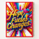 Un design dynamique où le texte multicolore "Hope Fuels Changes." rayonne d’énergie, chaque lettre brille d’or symbolisant la puissance de l’espoir à se transformer. Les tons vifs se fondent dans l'harmonie, évoquant un sentiment d'optimisme et de renouveau, tandis que les tons dorés apportent une touche de chaleur et de promesses inspirantes. "Image originale générée par Meta AI. L'IA a généré des oeuvres d'art. Licence CC BY-SA 4.0.